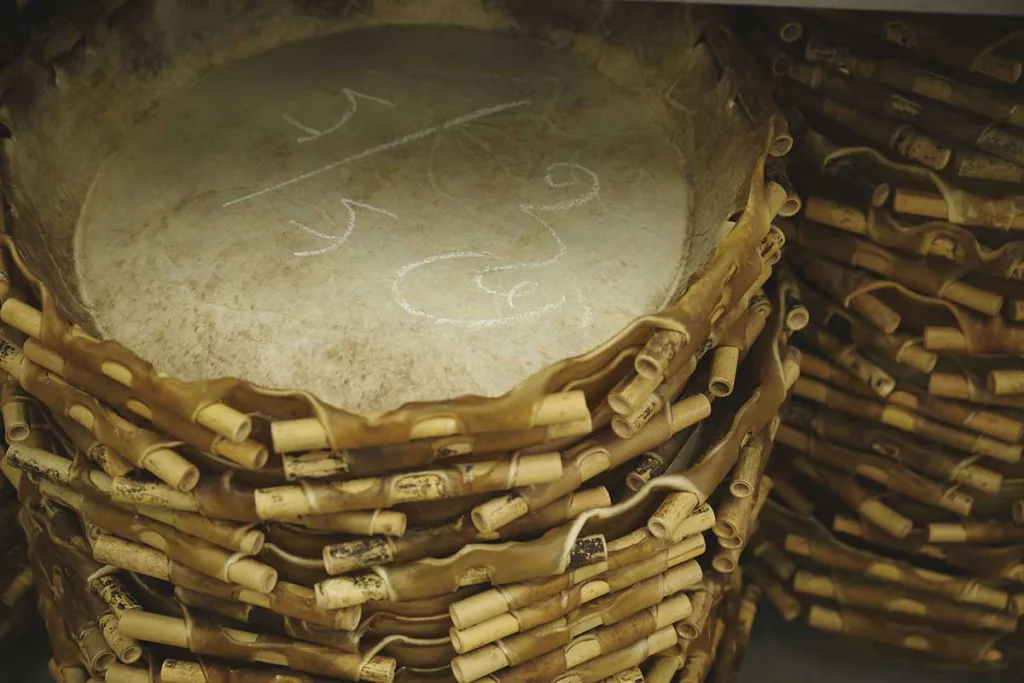 When a drum is reheaded, the name of the artisan who originally made it is written inside the body. We may never meet that person, or know who they were, yet we are touching the same drum they once worked on. With that awareness, we think about how the drum will be treated at its next repair, and how it will continue its journey over time. As years pass, some workshops and artisans disappear, and their names fade from record. For us, preserving names—and the record of those who worked on each piece—is deeply important. In this way, the work is carried forward to the next generation.